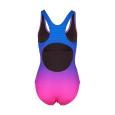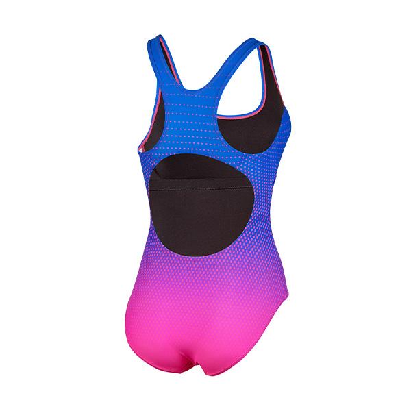 Met gradient dots zwemkleding in roze scoor je 1000 punten voor je sportieve zwemstijl! Het opvallend fel roze gekleurde design met roze gekleurde stippen en kleurverloop naar een meer donkere kleur blauw is totaal niet retro, maar ziet er enorm mooi en sportief uit! Het badpak is een Maxpower model en biedt een perfecte combinatie tussen bewegingsvrijheid en ondersteuning. Het badpak heeft een racerback achterkant met grote rugopening en medium hoge beensnit. Het badpak is aan de voorkant gevoerd en voorzien van een borstsupportband en uitneembare pads. Het badpak is verder uitgevoerd met brede schouderbandjes.