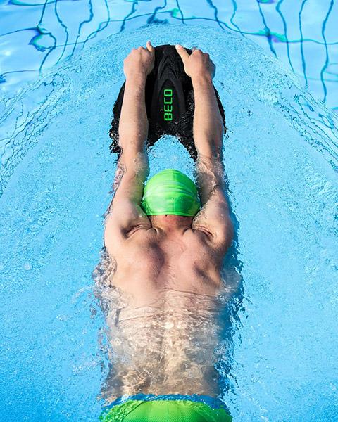 Het BECO zwemplankje Pro X2 is gemaakt van EPS-schuim en biedt een hoog drijfvermogen aan de handen/armen. Doordat je het zwemplankje met de handen vasthoudt, lig je als zwemmer horizontaal gestroomlijnd in het water, dat is de ideale positie in het water voor een goede zwemtraining.